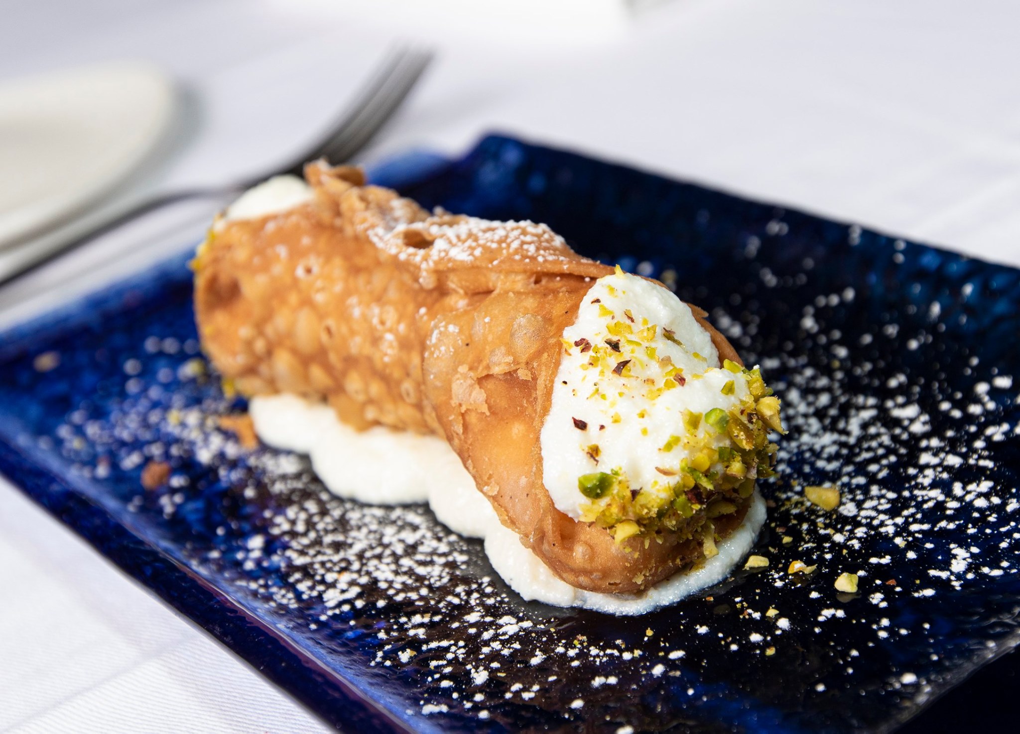 Home-made cannolo filled with Sicilian ricotta cheese or cream