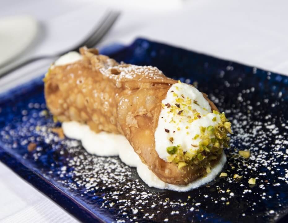 Home-made cannolo filled with Sicilian ricotta cheese or cream